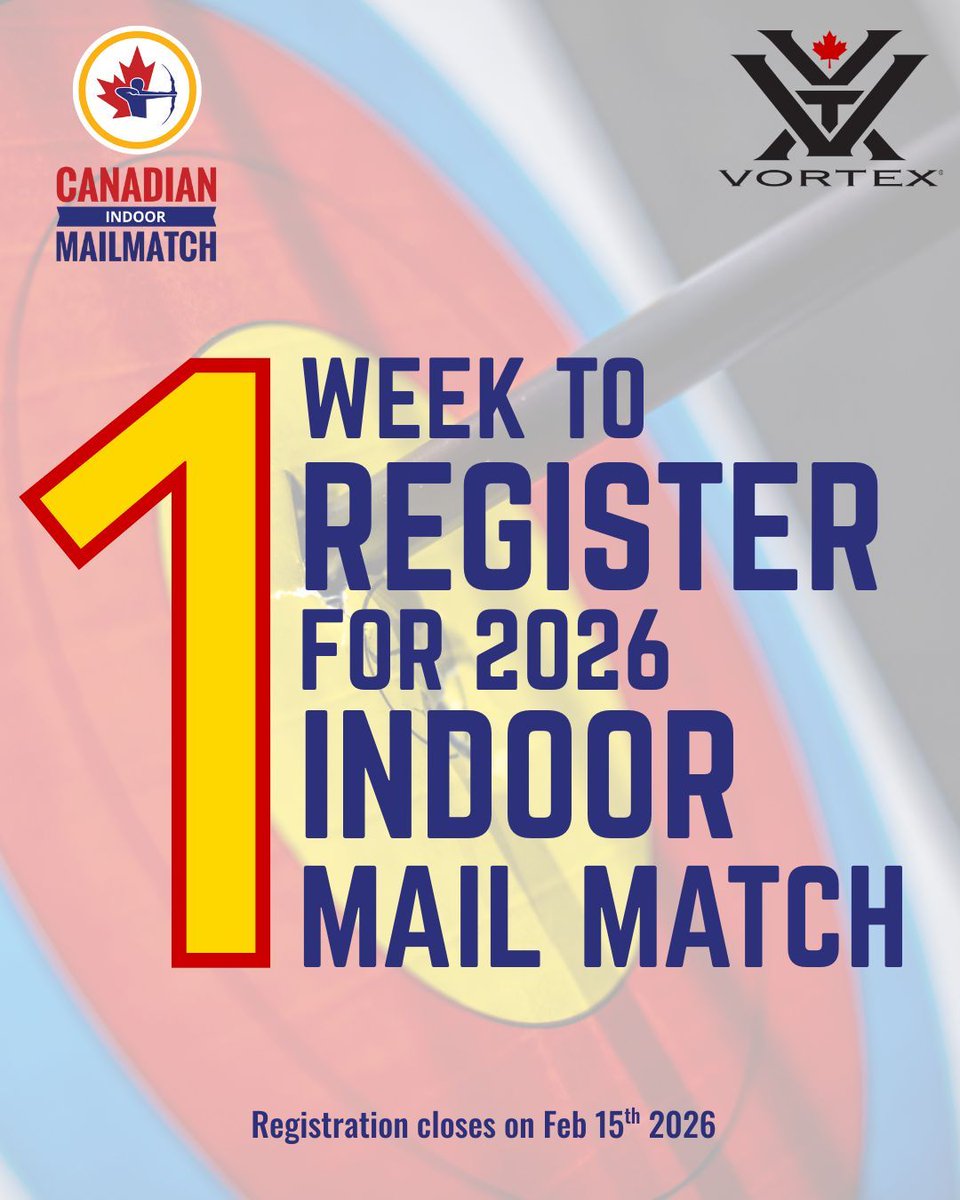 RT @ArcheryCanada: ⏰ One week left to register for the 2026 Indoor Mail Match https://t.co/C8c6Krpns2 // ⏰ Il ne reste plus qu'une semaine…