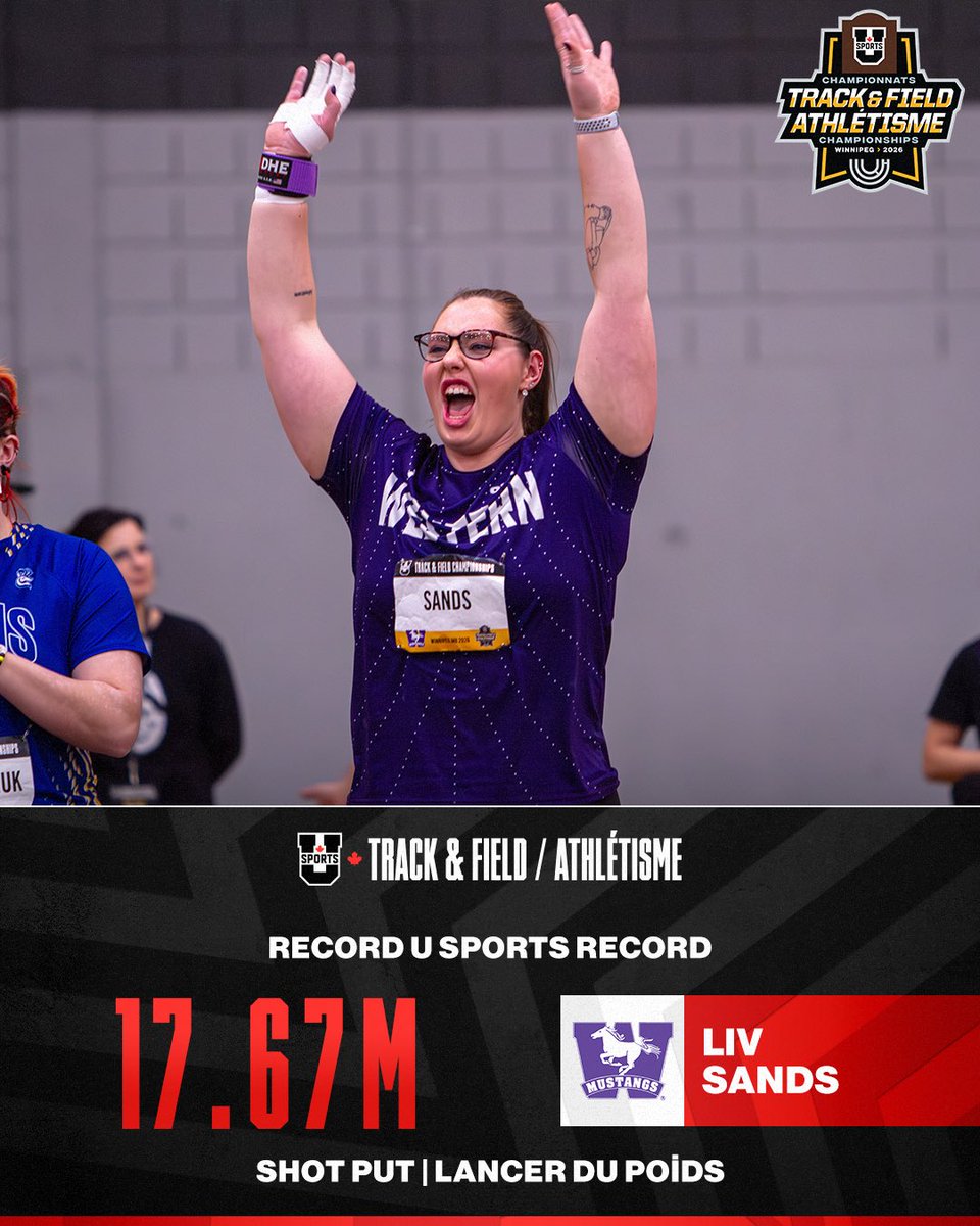 RT @USPORTSca: TF ⚡️U SPORTS RECORD 🚨 Liv Sands of @WesternMustangs sets a new championship record of 17.67 meters in the Women’s Shot Put!…