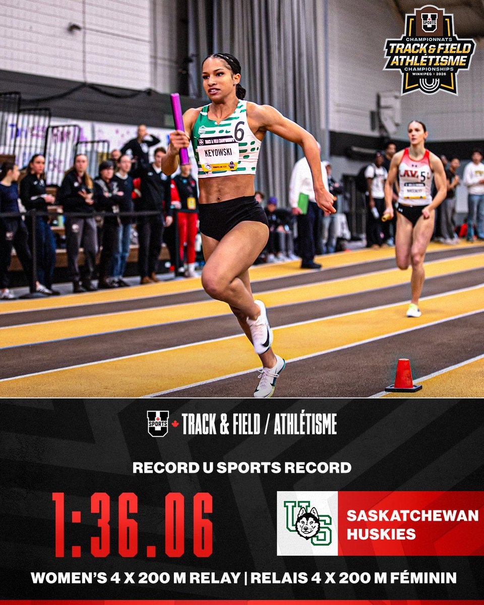 RT @USPORTSca: U SPORTS RECORD 🚨 The @HuskieAthletics set a new championship record in the Women’s 4x200m relay in Winnipeg! RECORD U SPOR…