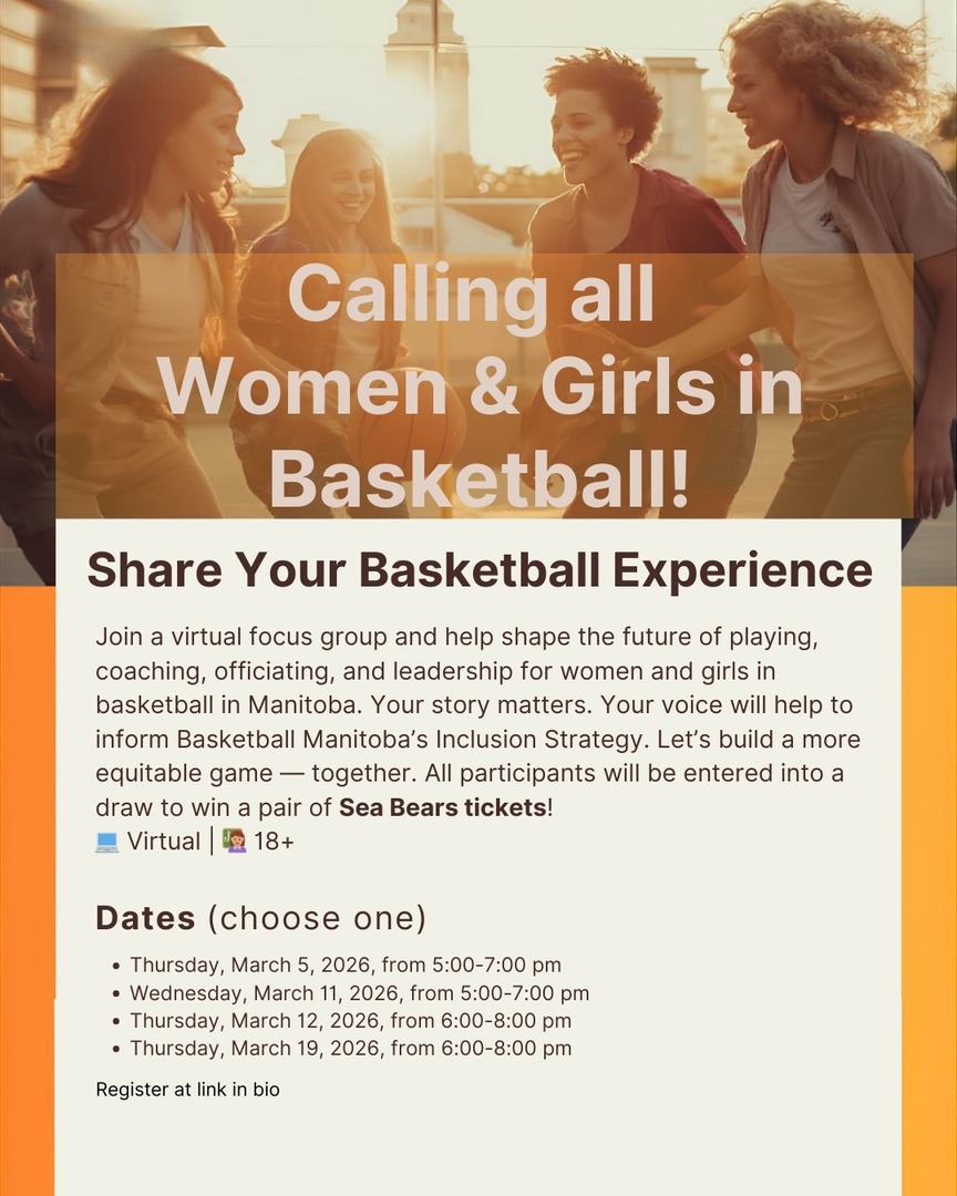 RT @basketballmb: Calling all women and girls in basketball (18+) 🏀 Basketball Manitoba is hosting virtual focus groups to hear your story…
