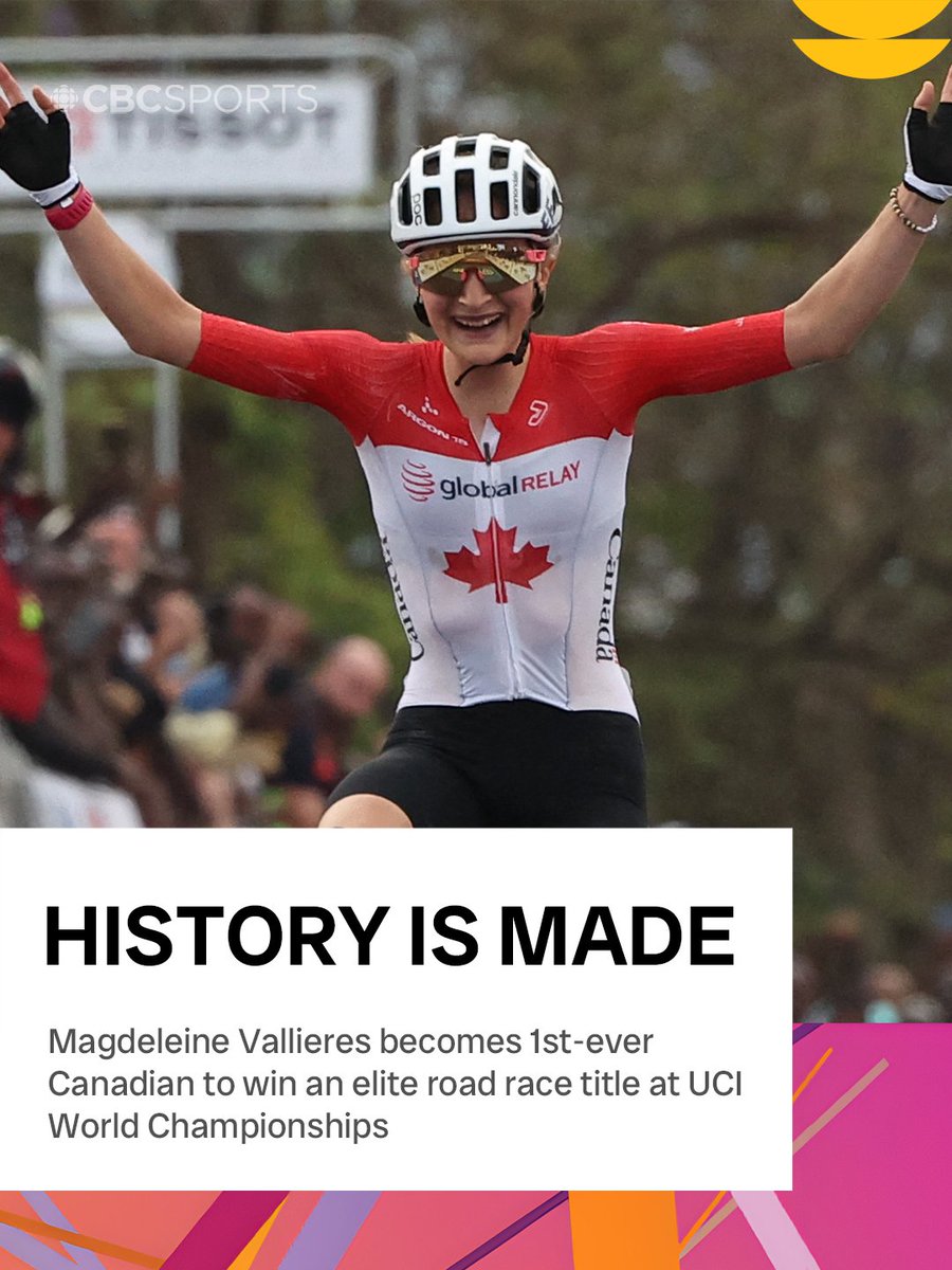 RT @cbcsports: Magdeleine Vallieres makes HISTORY and becomes the FIRST Canadian elite road race world champion🇨🇦🤩 https://t.co/JNseDKSGIc