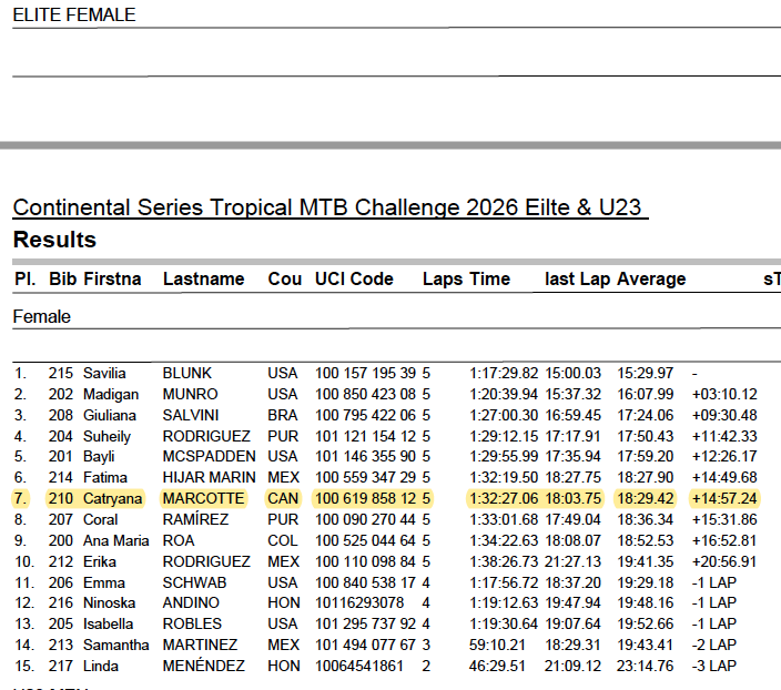 RT @cdncyclist: Results from the Tropical MTB Challenge, Puerto Rico U23 Women 1 Ella Myers 3 Lily Rose Marois 🇨🇦 4 Eli Clark 🇨🇦 5 Alexa H…