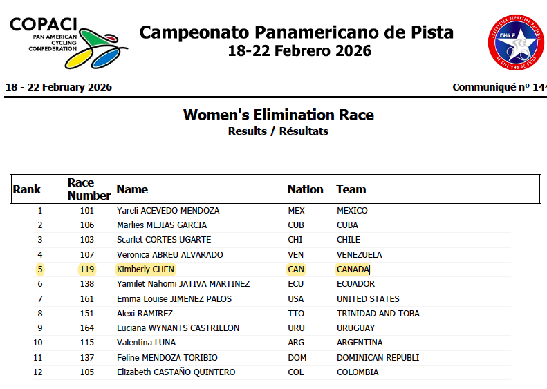 RT @cdncyclist: Pan American Track Championships Women Elimination Race #Santiago2026 https://t.co/X82j12hAYP