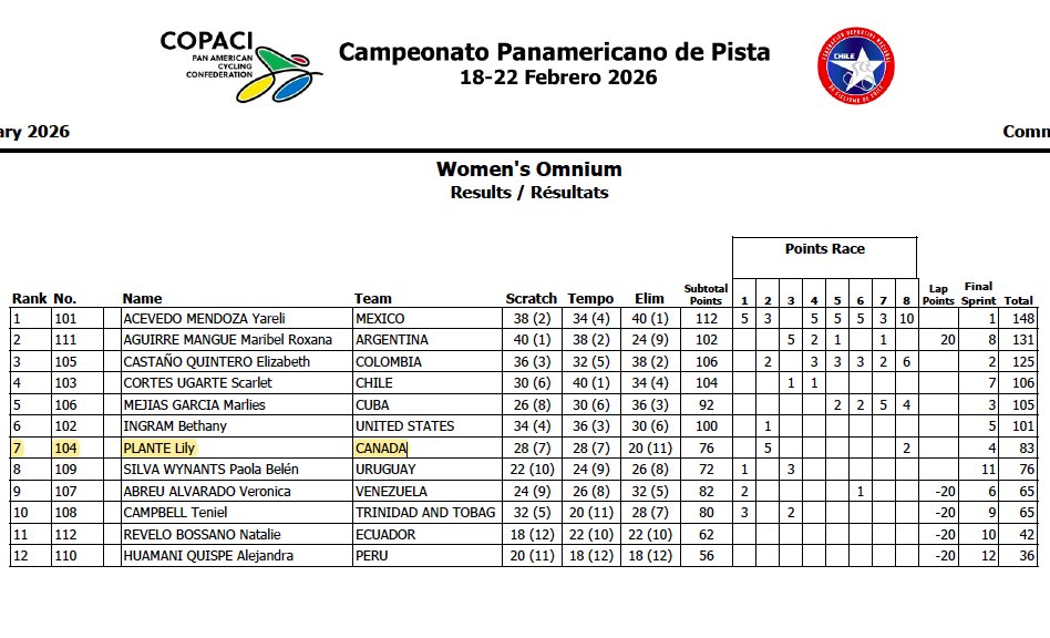 RT @cdncyclist: Pan American Track Championships Women's Omnium, Final #Santiago2026 https://t.co/Iwy9TRupHS