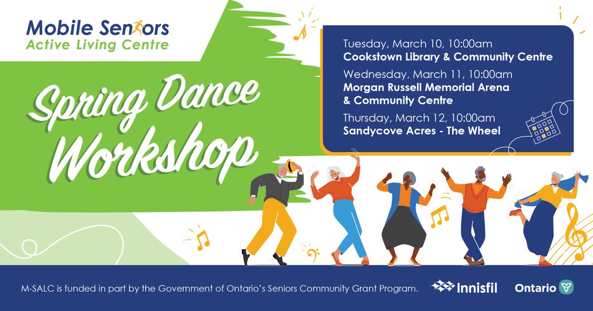 RT @townofinnisfil: Next month, our Mobile Seniors Active Living Centre is hosting a free, drop-in Spring Dance Workshop at our #Cookstown,…