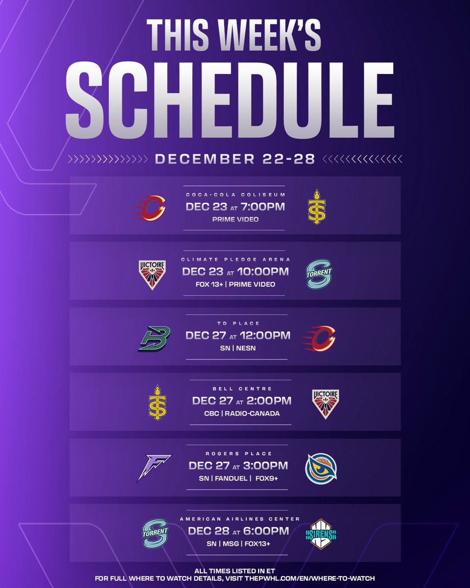 RT @thepwhlofficial: Another action-packed week ahead 👀 Don’t miss out - stream with our broadcast partners, on the PWHL YouTube channel,…