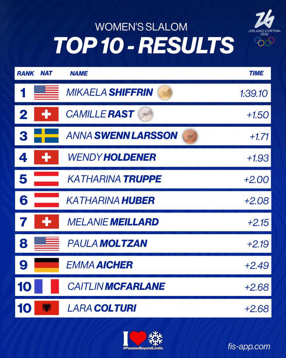 RT @fisalpine: ❄️ TOP 10 Women’s Slalom! The last Alpine race of the Olympic Games was simply amazing. Unforgettable finale on the biggest…