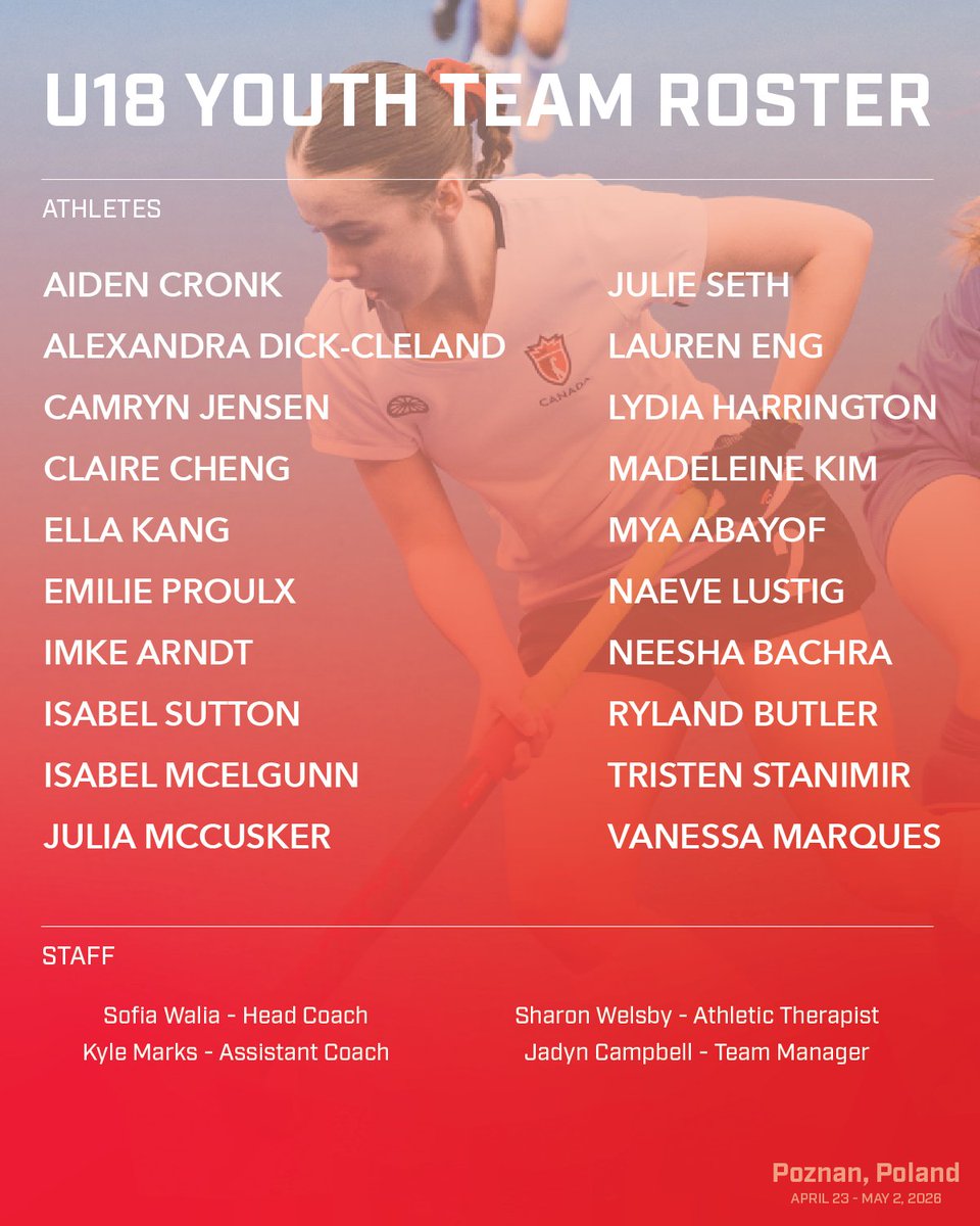 RT @FieldHockeyCan: Field Hockey Canada is excited to announce the U16 and U18 Women's Youth Teams heading to Poznan, Poland in April.…