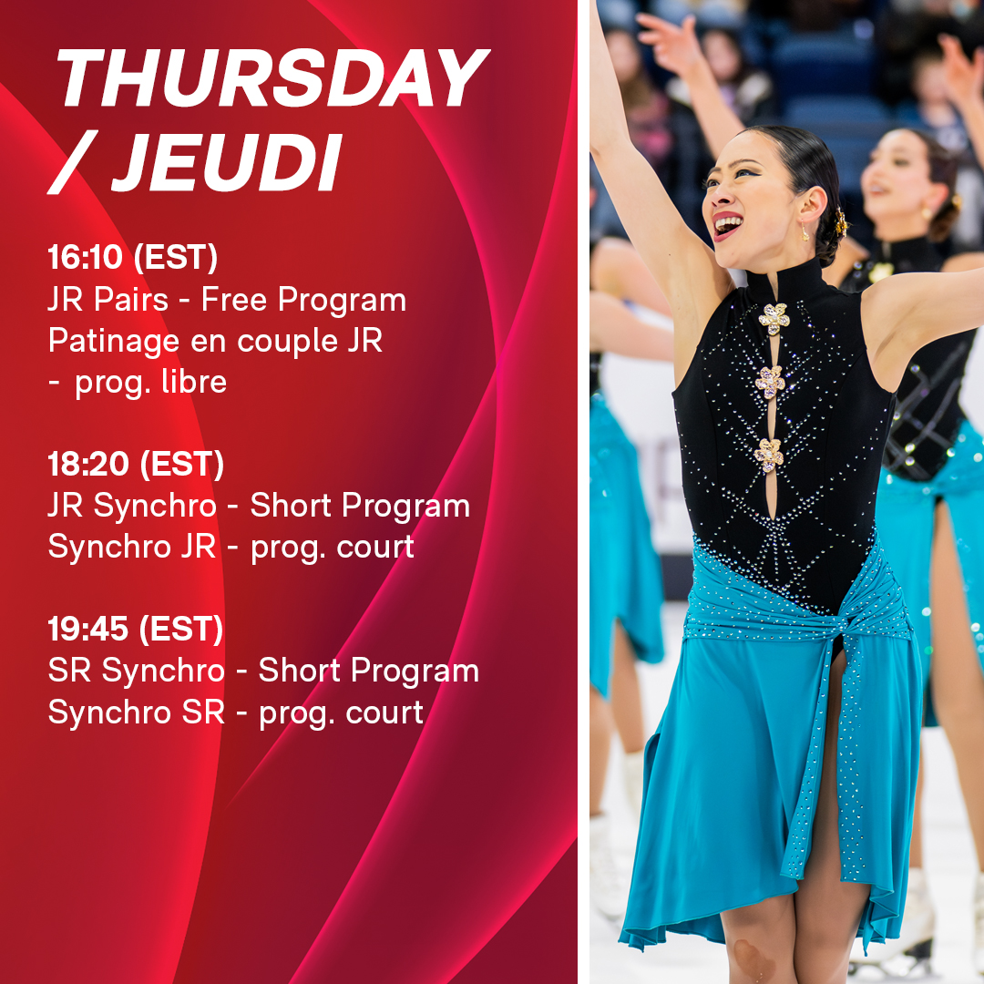 RT @SkateCanada: Synchro teams will be back on the ice today, and the competition will be fierce! Don’t miss the action! 🕒 15:10 EST 📍 Ga…