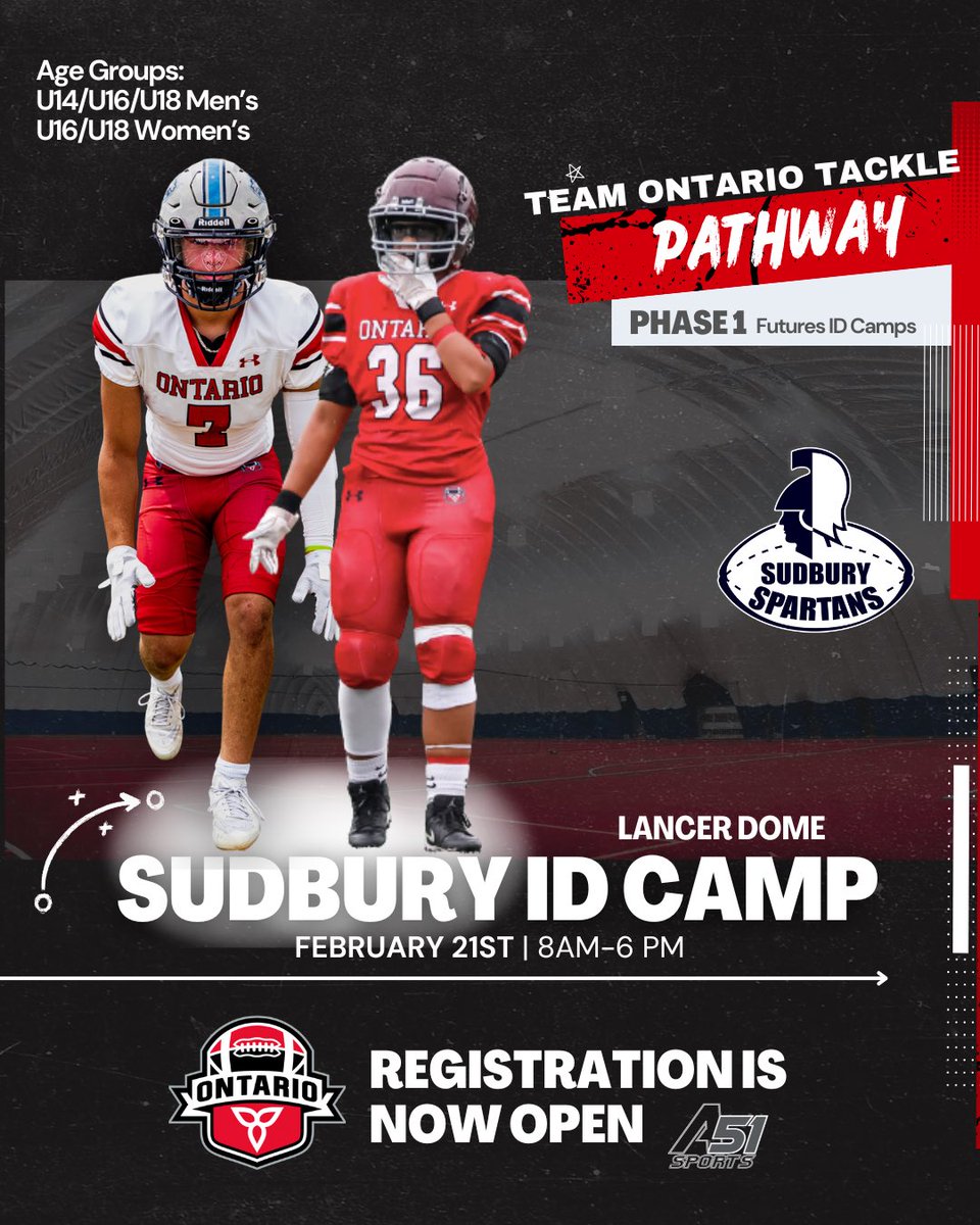 RT @FootballOntario: This weekend is the last chance to register for our 2026 Sudbury Team Ontario Tackle Futures ID Camp. This camp is yo…