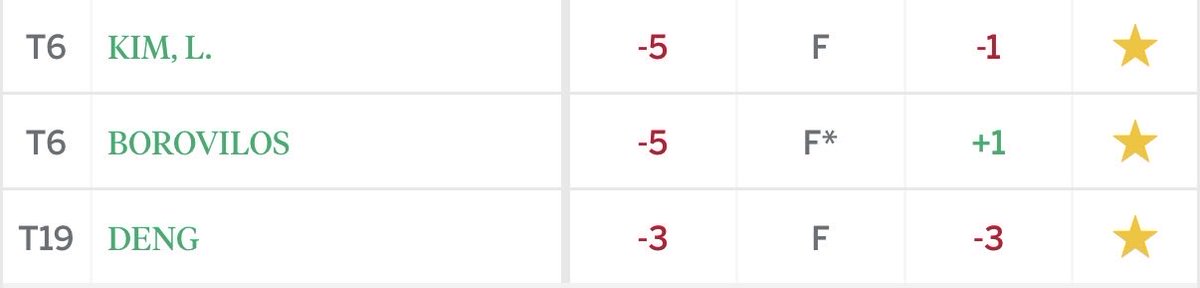 RT @Flagstick: Lauren Kim in the house with 68-71 - safe to make it to final round Borovilos is t-5 with 6 holes left in round 2 Deng ch…