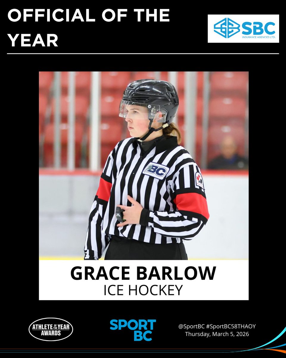 RT @SportBC: Congrats to Grace Barlow for being named Official of the Year at Sport BC’s Athlete of the Year Awards. Barlow completed her…