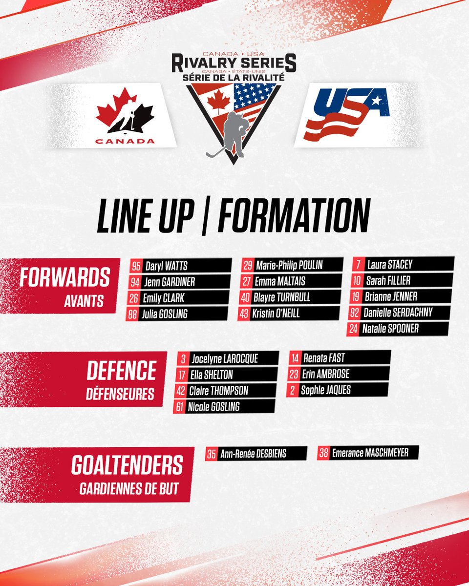 RT @HockeyCanada: Lineup is locked. 🇨🇦 La formation est confirmée. 🇨🇦 #RivalrySeries | #SérieDeLaRivalité https://t.co/UV24dscOZo