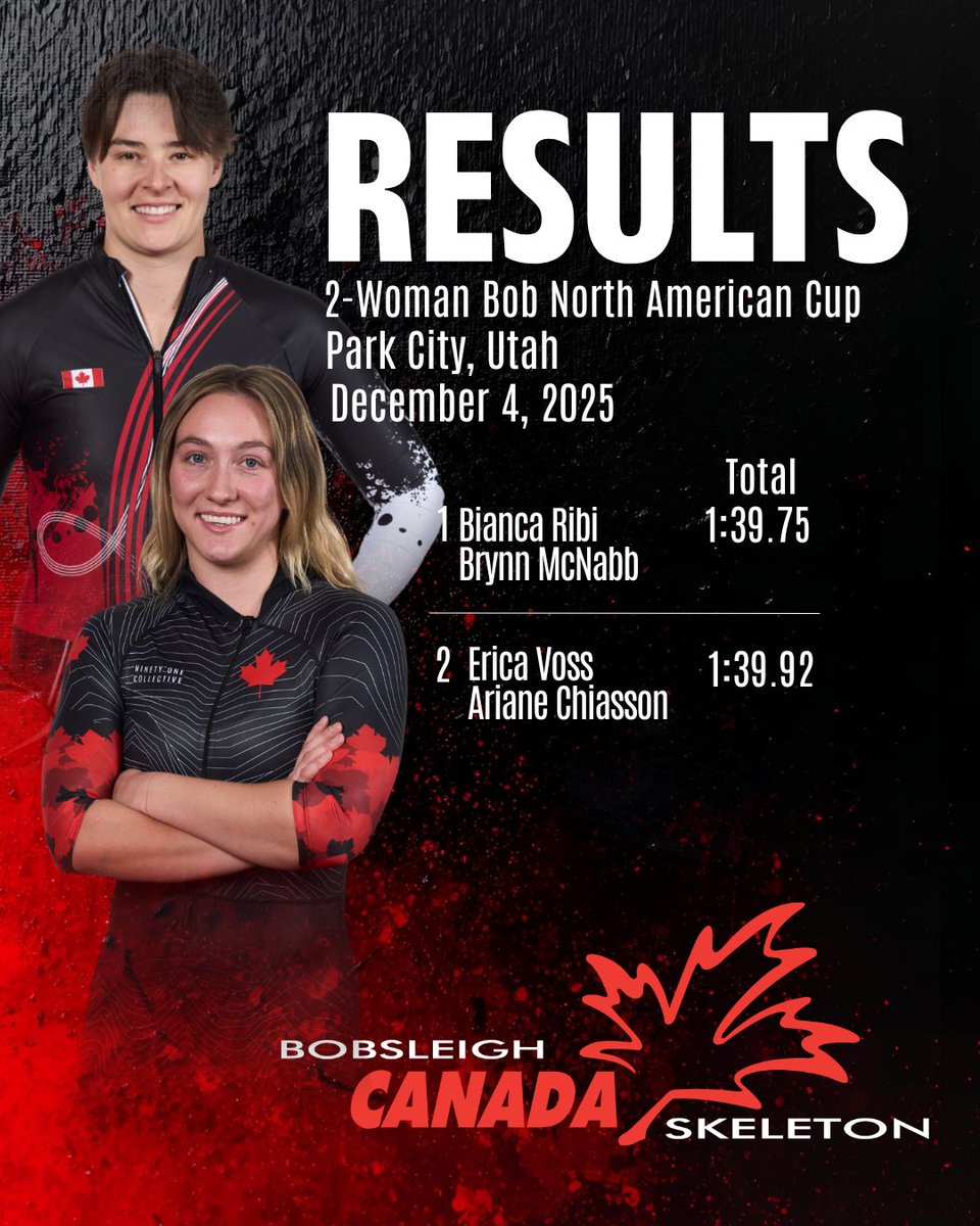 RT @BobCANSkel: North American Cup stop #2 in Park City is in the books! Bianca Ribi & Brynn McNabb slide into the top spot, with Erica Vos…