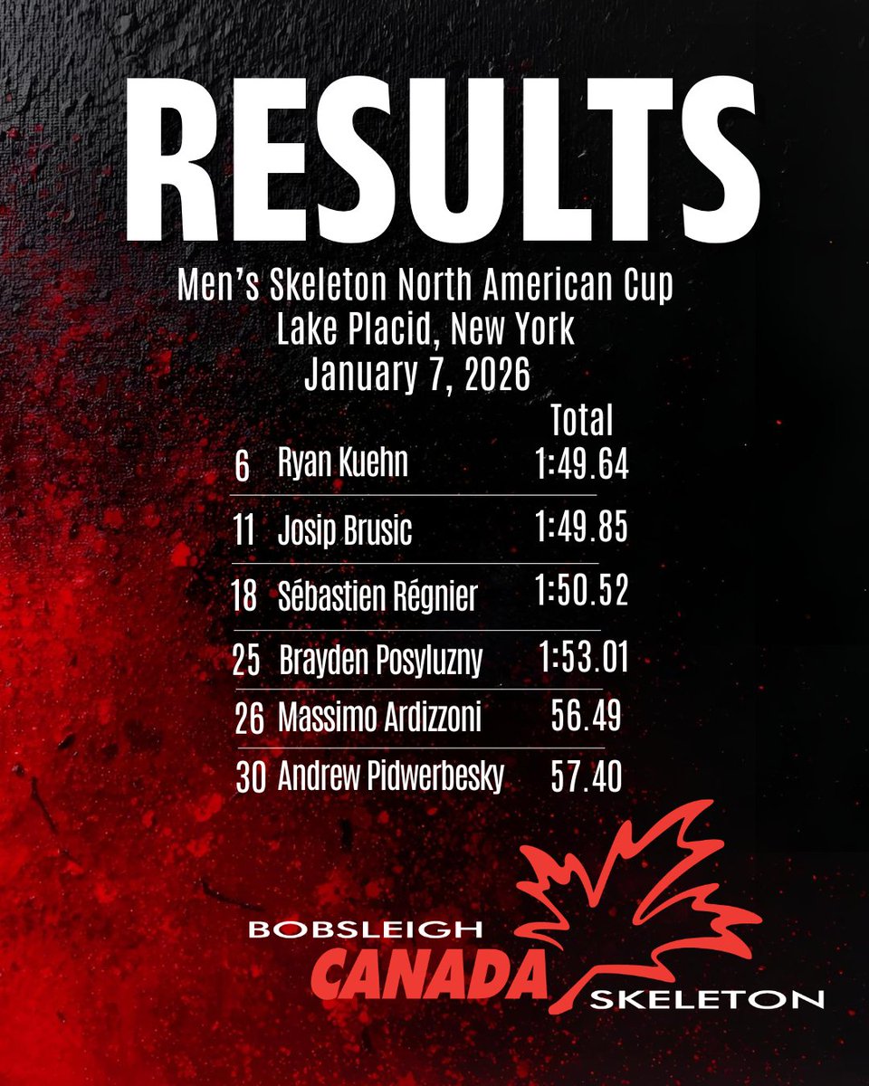 RT @BobCANSkel: Solid results to wrap up the Skeleton in Lake Placid at the North American Cup #6! De solides résultats pour conclure l'é…