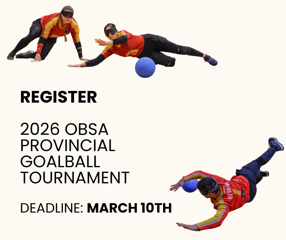 RT @BlindSports: OBSA 14th Annual Provincial Goalball Tournament is right around the corner and we can’t wait to welcome you! Dates: April…
