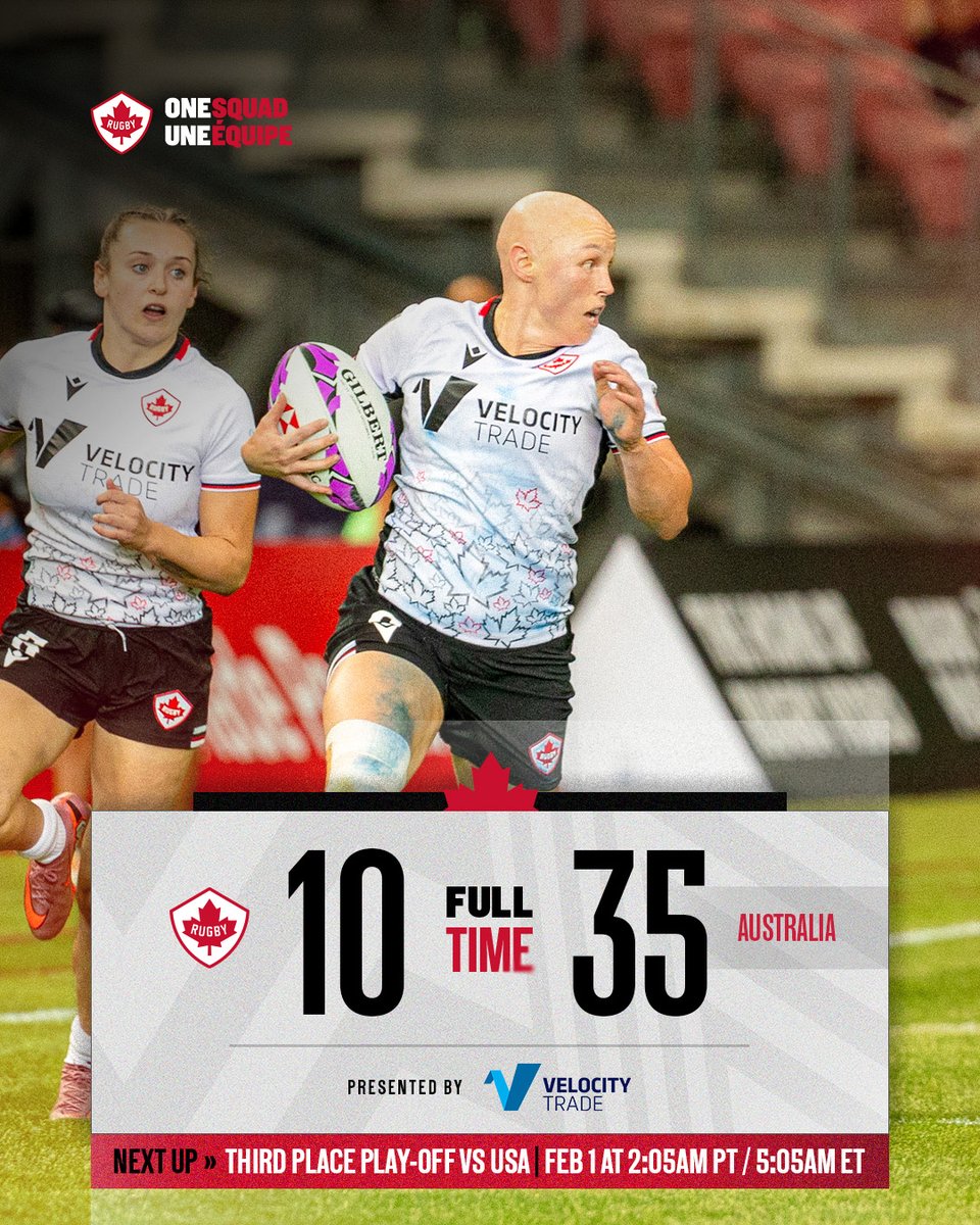 RT @RugbyCanada: Regrouping to play for bronze in Singapore🇨🇦 🏉 Scorers: Alysha Corrigan (1T), Savannah Bauder (1T) Next for Canada’s…