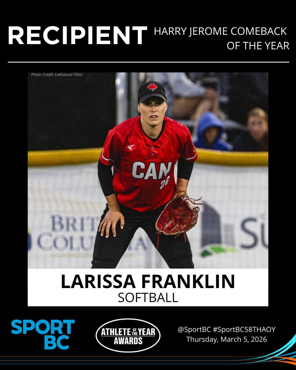 RT @SportBC: Congratulations to Larissa Franklin for being the recipient of the Harry Jerome Comeback of the Year Award! She helped Canada…