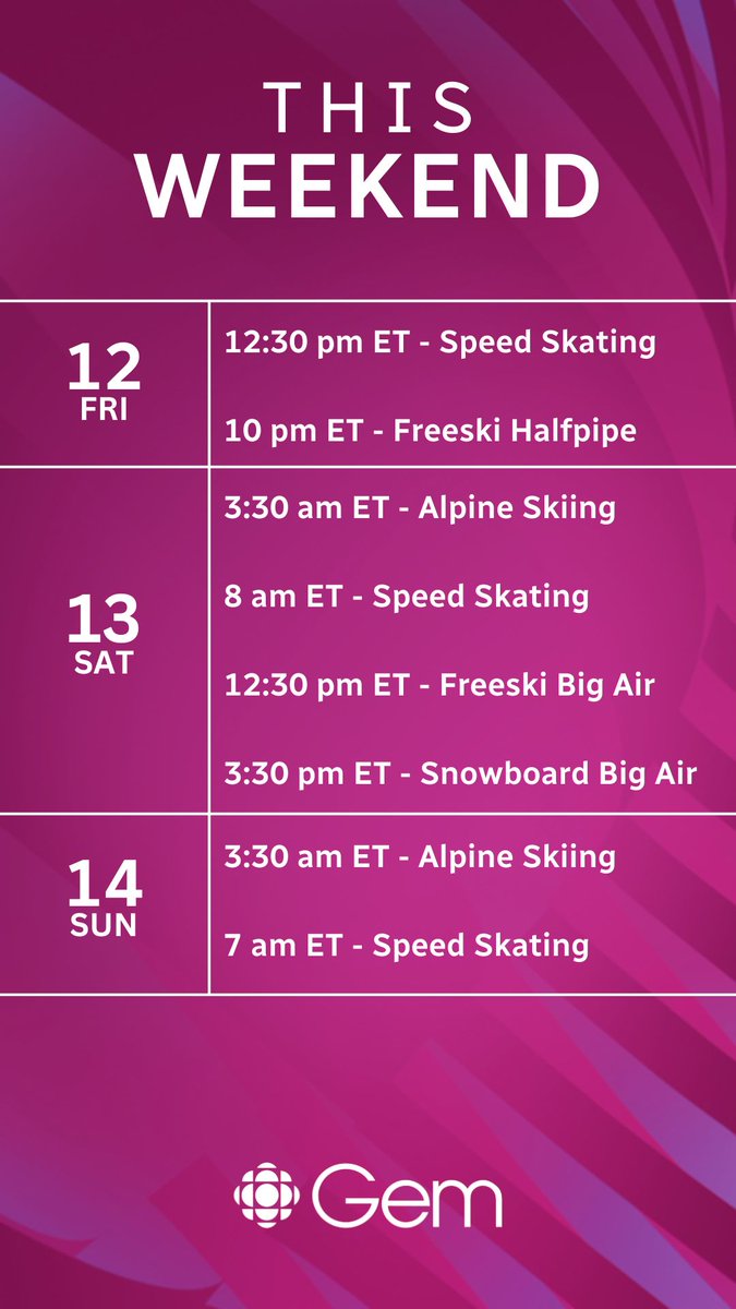 RT @CBCOlympics: WEEKEND STREAMING GUIDE 📌 Winter sports are in full swing ahead of #MilanoCortina2026 👀 - #GPFinal from Japan ⛸ - Long t…