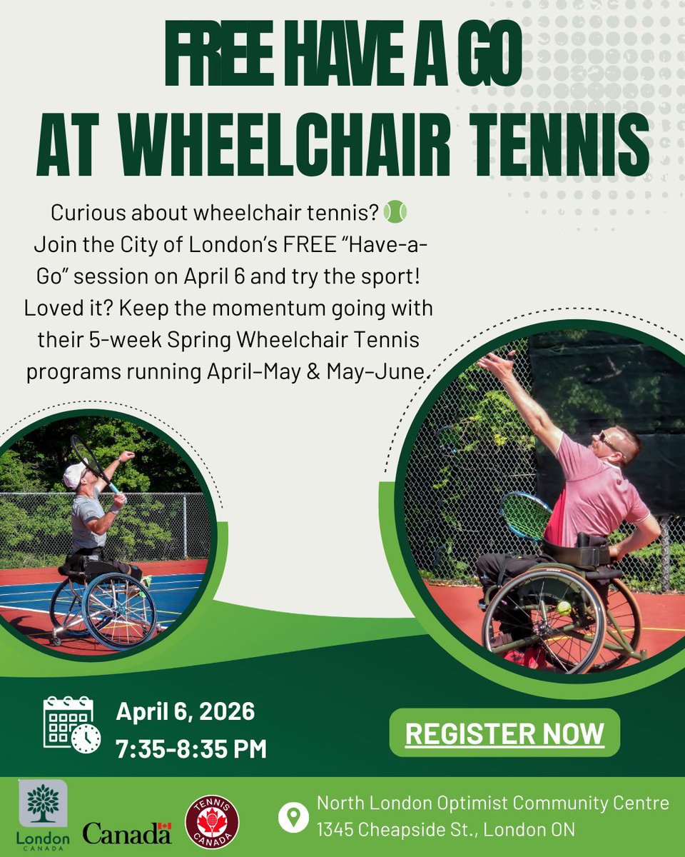 RT @ONPARANETWORK: 🎾 Try Wheelchair Tennis♿ City of London is hosting a FREE Have-a-Go session April 6 and see if the sport is for you! C…