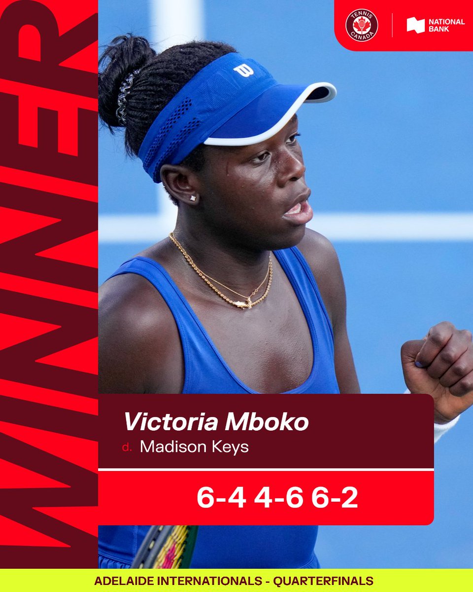 RT @TennisCanada: UPSET ALERT 😱 Victoria Mboko 🇨🇦 is through to the semifinals of the Adelaide Internationals after stunning World No. 9 M…