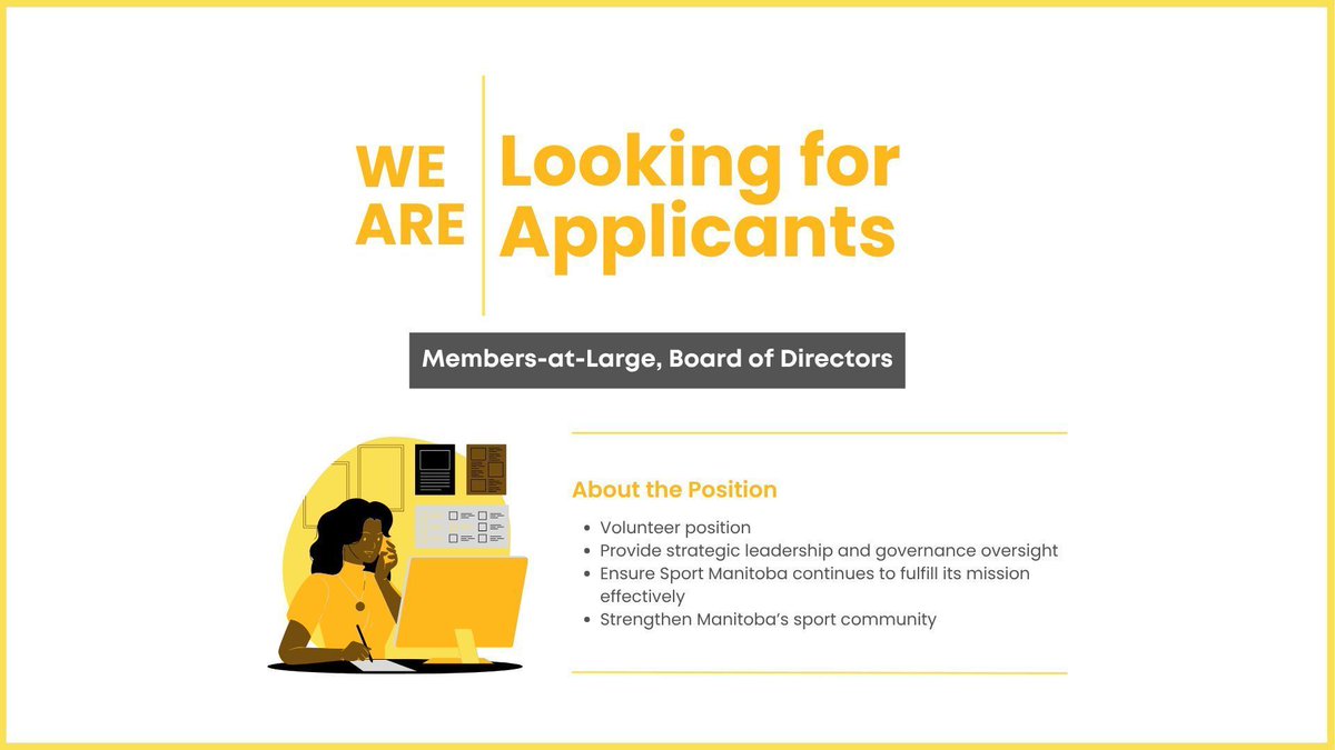 RT @SportManitoba: Sport Manitoba is seeking passionate leaders to join its Board of Directors! Board members bring a passion for sport an…